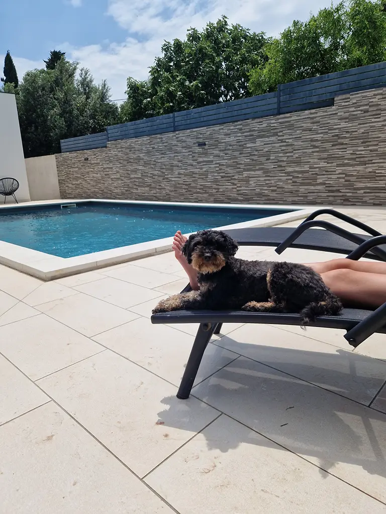 Unsere Wahl fiel schließlich auf Kroatien – genauer gesagt: Istrien, Stinjan. Mit Klimaanlage, Pool und einem Hundestrand in der Nähe. (Kleiner Spoiler: Ein „Hundestrand“ ist nicht immer so cool, wie es klingt – vor allem, wenn dein Hund lieber Abstand hält zu anderen Hunden…)