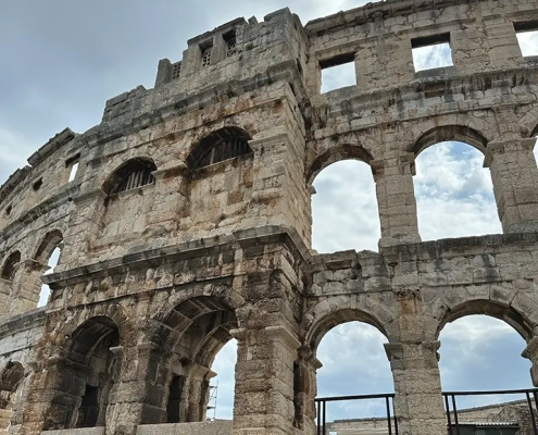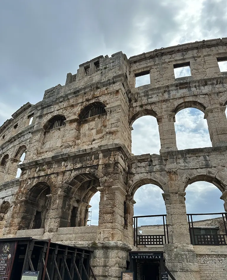 Das Amphitheater haben wir uns nur von außen angeschaut – aber auch dort gibt’s unterirdische Gänge, falls man mehr entdecken will.