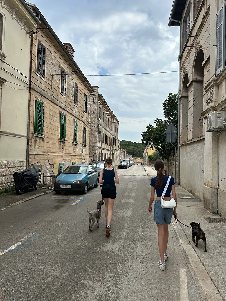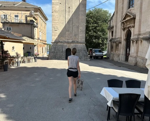 Unser Lieblingsrestaurant: „Grill Bar & Steak House Campo“. Super Auswahl – auch für Vegetarier – und mega hundefreundlich. Wir konnten draußen mit den Hunden essen, alles ganz entspannt. Generell hatten wir das Gefühl, dass Hunde in Kroatien echt willkommen sind. Ein Ladenbesitzer hat uns sogar hereingebeten, als ich draußen wartete – und Wassernäpfe vor den Geschäften waren keine Seltenheit.