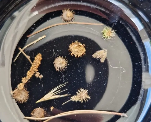 Der erste Spaziergang war magisch – kleiner Wald, richtig idyllisch. Nur leider haben sich unsere frisch geschorenen Hunde danach in wandelnde Kletten-Magneten verwandelt. 45 Minuten lang haben wir sie vom stacheligen Zeug befreit. Welcome to the wild.